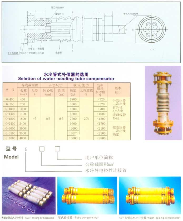 用于礦熱爐(電石爐、鐵合金爐、工業(yè)硅爐、黃磷爐等)短網系統(tǒng),既用于變壓器二次出線端與固定銅管的連接(補償器A型接頭并可用作電弧爐、鋼鐵爐補償器),也用于固定銅管與爐內可動銅管(連接銅瓦)之間的連接一水冷電纜。其中補償器可補償安裝誤差,熱脹冷縮和吸收短網的電磁力引起的振動